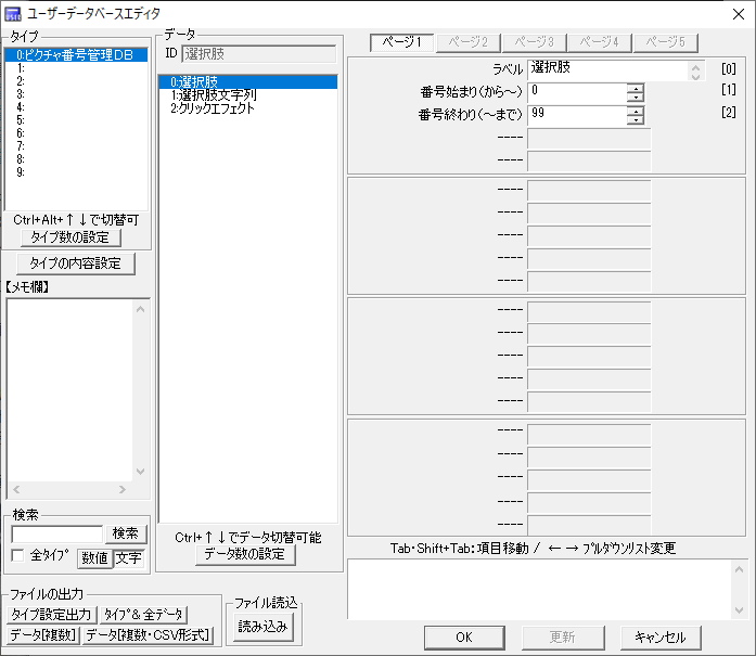 ちなみに僕は「データIDを最初の文字列データと同じ」にすることが好きな人間なので,わざわざID用の文字列データをとってます(不要なら省いてください).また使い方によっては初めと終わりの番号ではなく,初めの番号とそこから何枚使うかという情報を格納してもいいと思います.そこはお好みで.