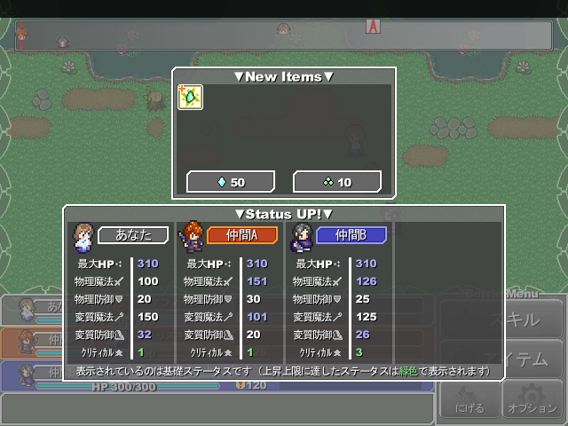 | こんな感じで戦闘毎に少しずつステータスアップ |