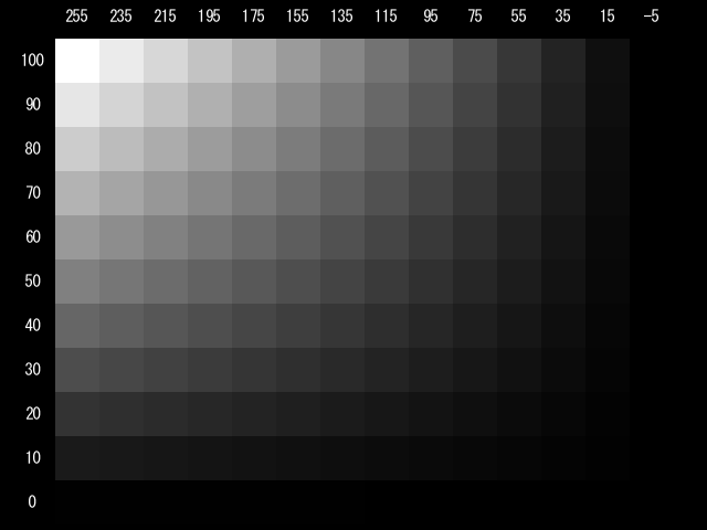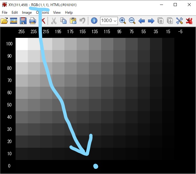 | こんな感じで不透明度とカラーを弄って画素値見ました |