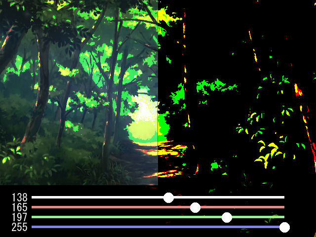 | カラー画像も二値化可能 | RGB成分ごとに操作可能 |